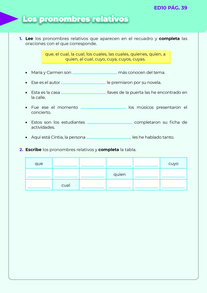 Escritura divertida 10 ED10 PAG.39 10 de abril de 202423 de agosto de 2024 Los pronombres relativos Descargar QR