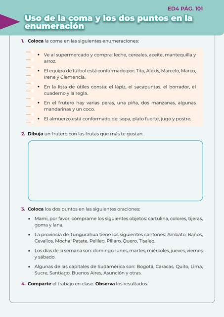 Escritura divertida 4 ED4 PAG.101 15 de enero de 202423 de agosto de 2024 Uso de la coma y los dos puntos en la enumeración Descargar QR