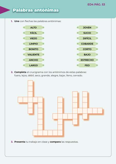 Escritura divertida 4 ED4 PAG.53 15 de enero de 202423 de agosto de 2024 Palabras antónimas Descargar QR