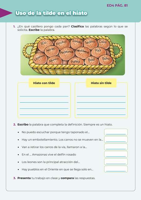 Escritura divertida 4 ED4 PAG.81 15 de enero de 202423 de agosto de 2024 Uso de la tilde en el hiato Descargar QR