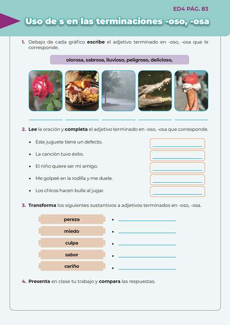 Escritura divertida 4 ED4 PAG.83 15 de enero de 202423 de agosto de 2024 Uso de la S en las terminaciones oso osa Descargar QR