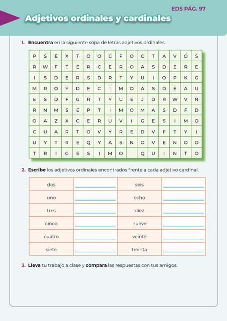 Escritura divertida 5 ED5 PAG.97 12 de enero de 202423 de agosto de 2024 Adjetivos ordinales y cardinales Descargar QR