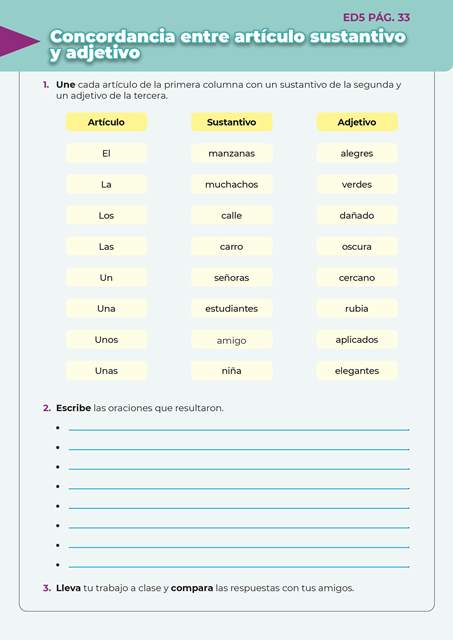 Escritura divertida 5 ED5 PAG.33 12 de enero de 202423 de agosto de 2024 Concordancia entre artículo sustantivo y adjetivo Descargar QR