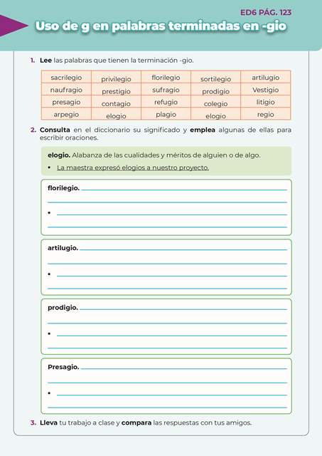 Escritura divertida 6 ED6 PÁG.123 27 de febrero de 202423 de agosto de 2024 Uso de g en palabras terminadas en gio- Descargar QR